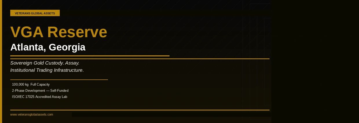 The VGA Reserve is Veterans Global Assets' dedicated physical gold custody, assay, and institutional trading facility, under development in Atlanta, Georgia.